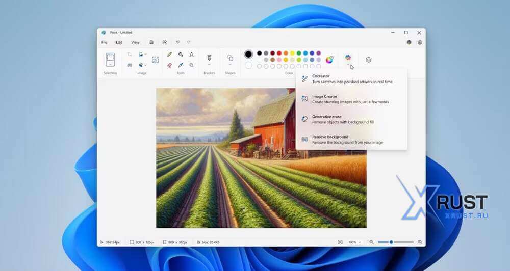 Paint также предлагает функцию под названием Generative Erase, которая позволяет пользователям удалять нежелательные объекты с изображений и заменять их фоном, который создается и смешивается. Наконец, пользователи могут просто щелкнуть, чтобы удалить фон с любого изображения с помощью инструмента Remove backdrop.