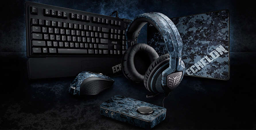 Обычно ко мне на тесты попадают отдельные устройства, а тут привезли огромный пакет с кучей всего интересного. Содержимое порадовало – внутри оказался комплект игровых гаджетов ASUS Echelon, состоящий из клавиатуры, мышки, коврика, гарнитуры и даже внешней звуковой карты! Все новенькое, красивое и раскрашенное в армейский камуфляж.